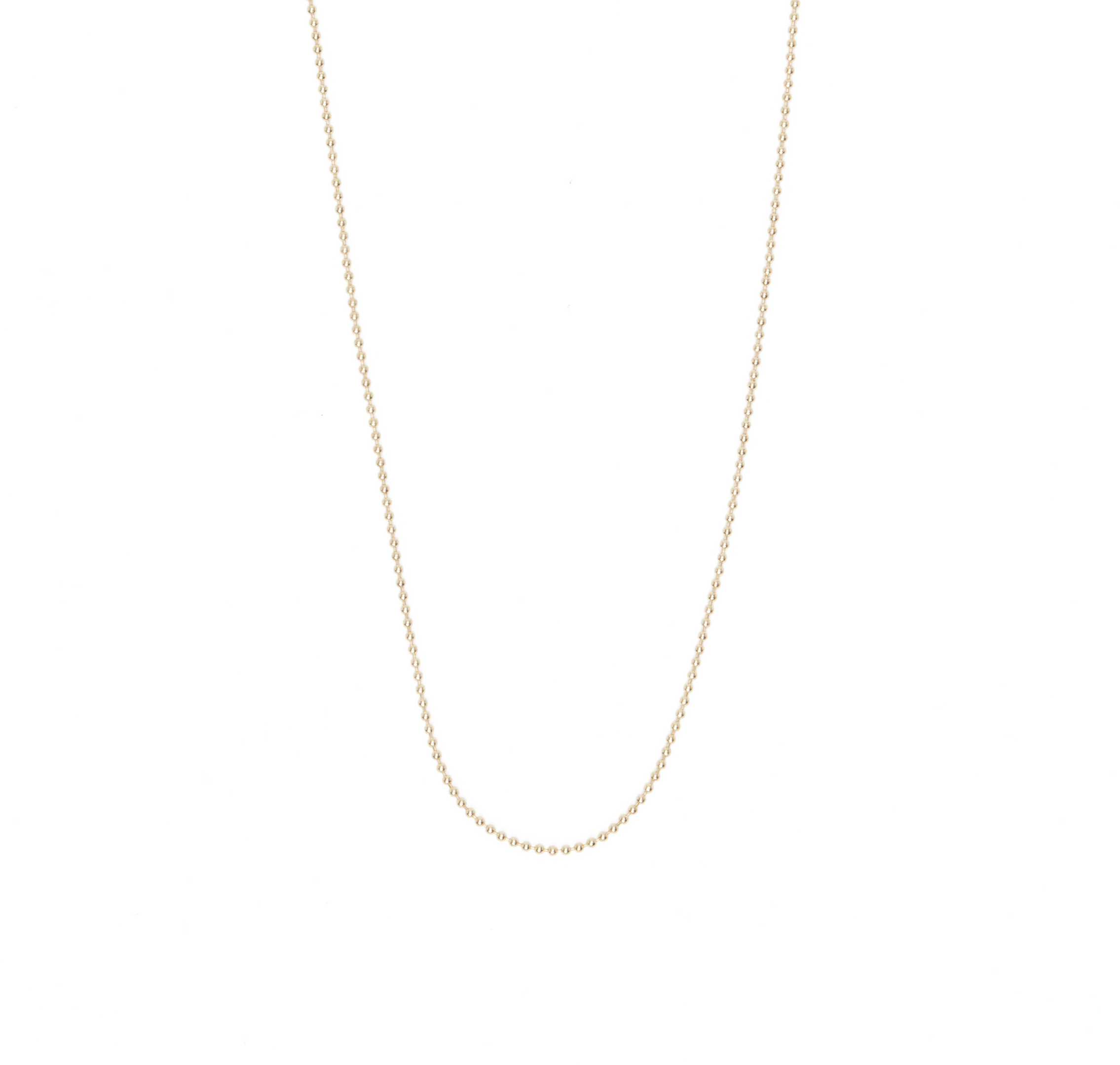 The Ball Chain is perfect for showcasing your favourite LG pendants and charms. Previously featured on our Dice Charm Necklaces, this highly requested chain is now available on its own! Choose the perfect length–available in 18" or 20", this fine and lightweight beaded chain can be worn solo or perfect for layering to elevate your look effortlessly.